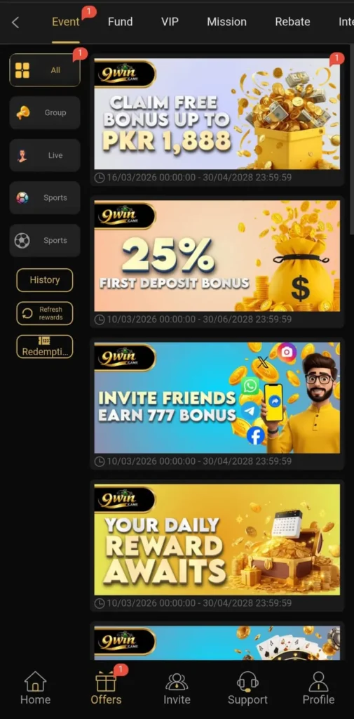 Rebate Ratio in 9WIN Game in Pakistan