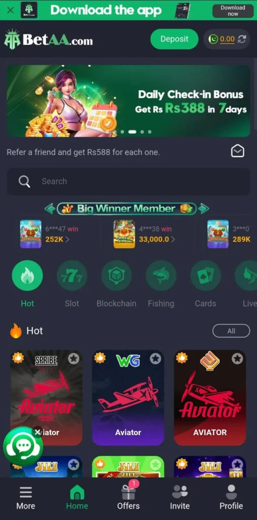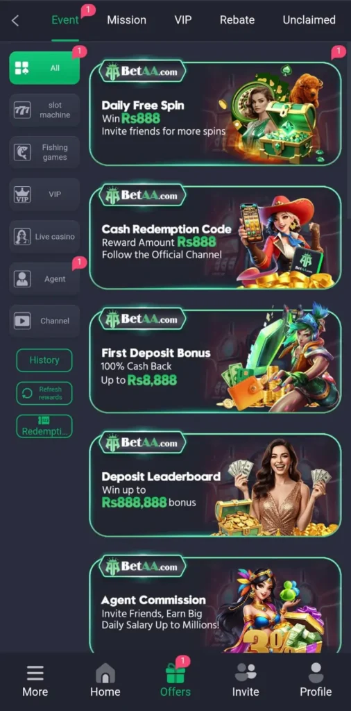 - Wide Variety of Games: Offers card games, lucky draws, slot games, and more.