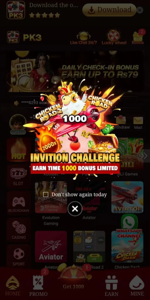 PK3 Game keeps the excitement going with regular bonuses and rewards. Here is a look at what you can expect: